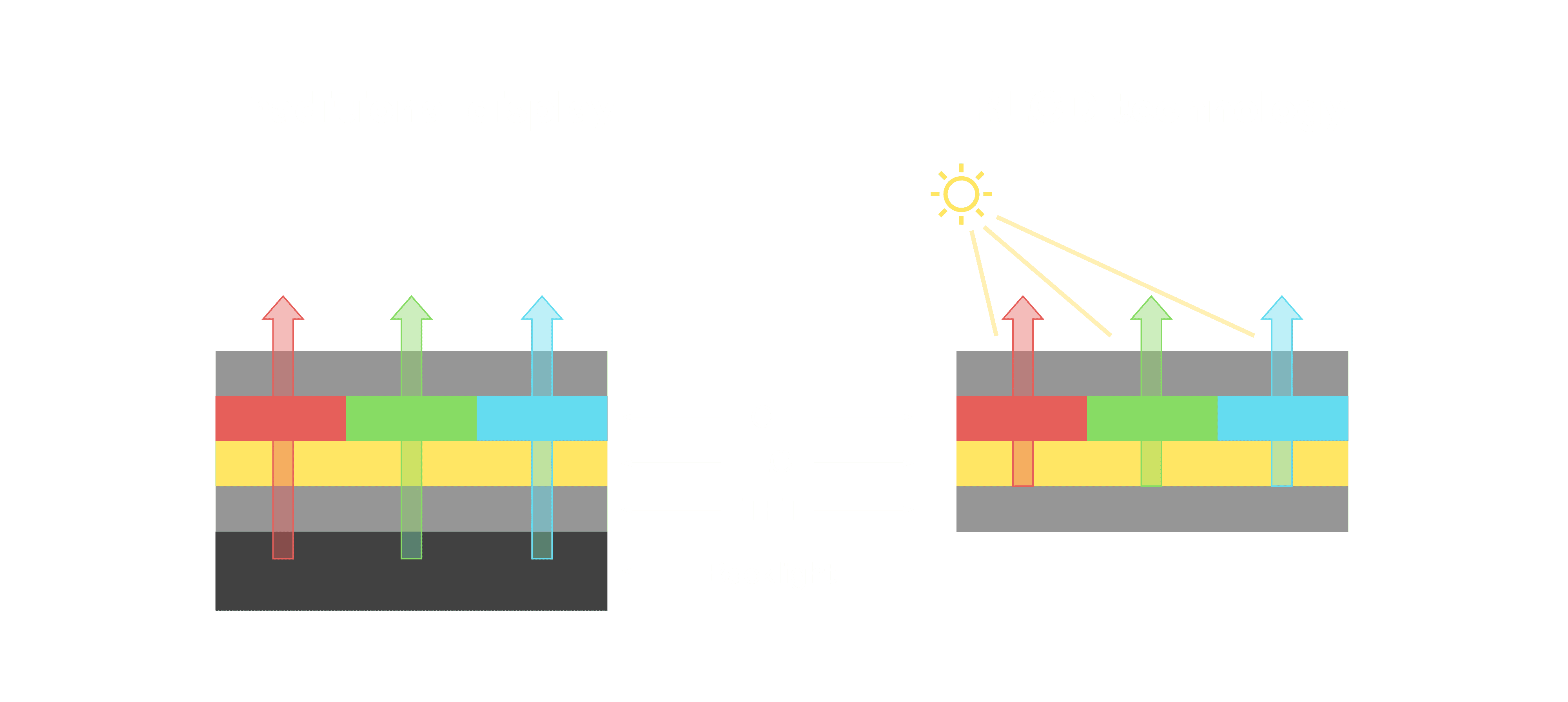 与传统需搭配背光单元的液晶显示相比,,,,反射式液晶技术不仅更省电、、、、更轻薄,,,且即便在艳阳下仍能清晰显示。。此外,,,少了背光单元,,,,也大幅降低了 LED 蓝光伤害眼睛的疑虑。。。。