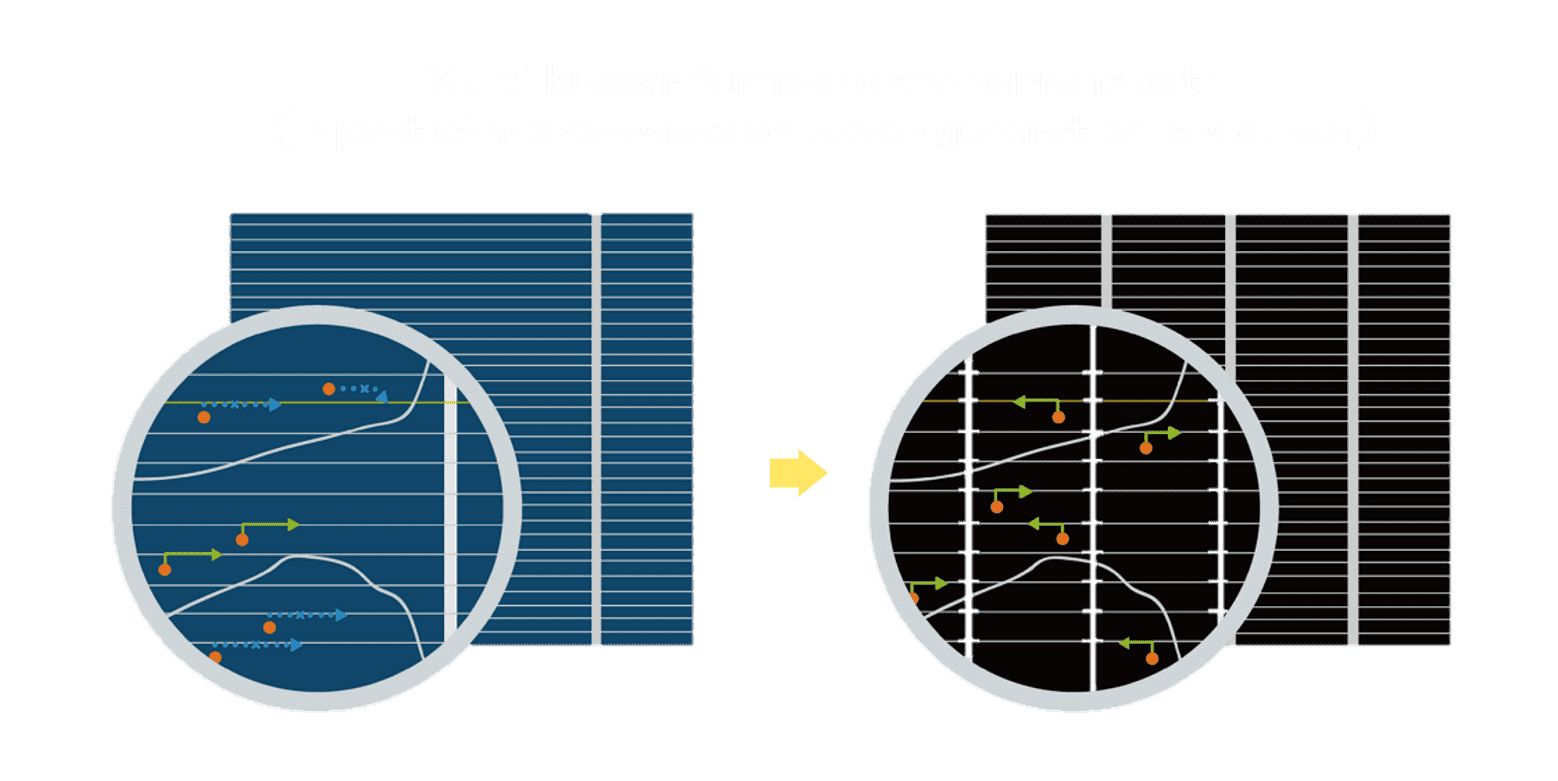 优化的太阳能电池结构设计,,不仅提高电流收集效率,,,降低电池隐裂,,,使太阳能模组长期维持稳定的输出效能,,,,提高营运效益。。